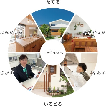 MAGHAUSのお家にいると、とてもほっとします。何十年 先もご新築時とかわらない心地よさで暮らしていただけるよう、お客さまの想いや考えに寄り添ったご提案であることを大切にしています。一生に一度の買い物だからこそ、作るお家はあなたにとっていちばん好きな場所であってほしい。MAGHAUSはそんな想いでお家づくりをご提案します。