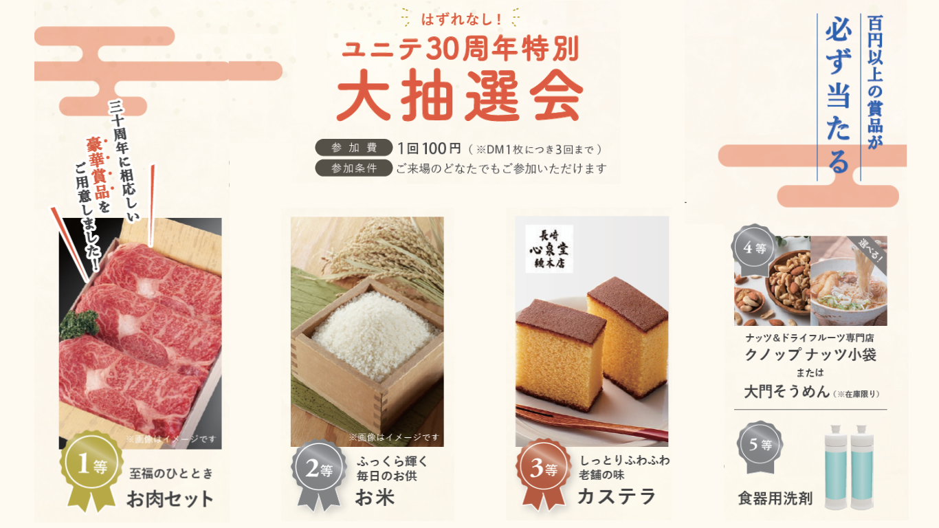 ハズレ無しの30周年にふさわしい豪華賞品をご用意しました。