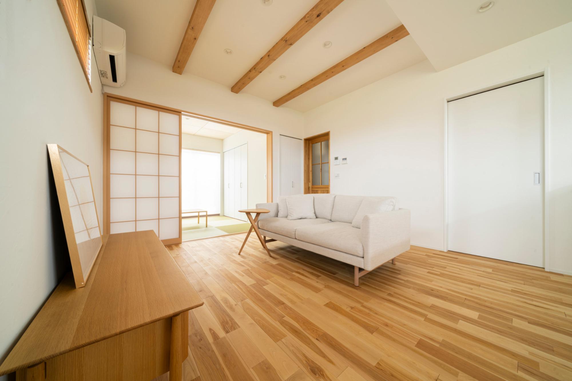 一直線につながり明るく開放的なLDKと和室